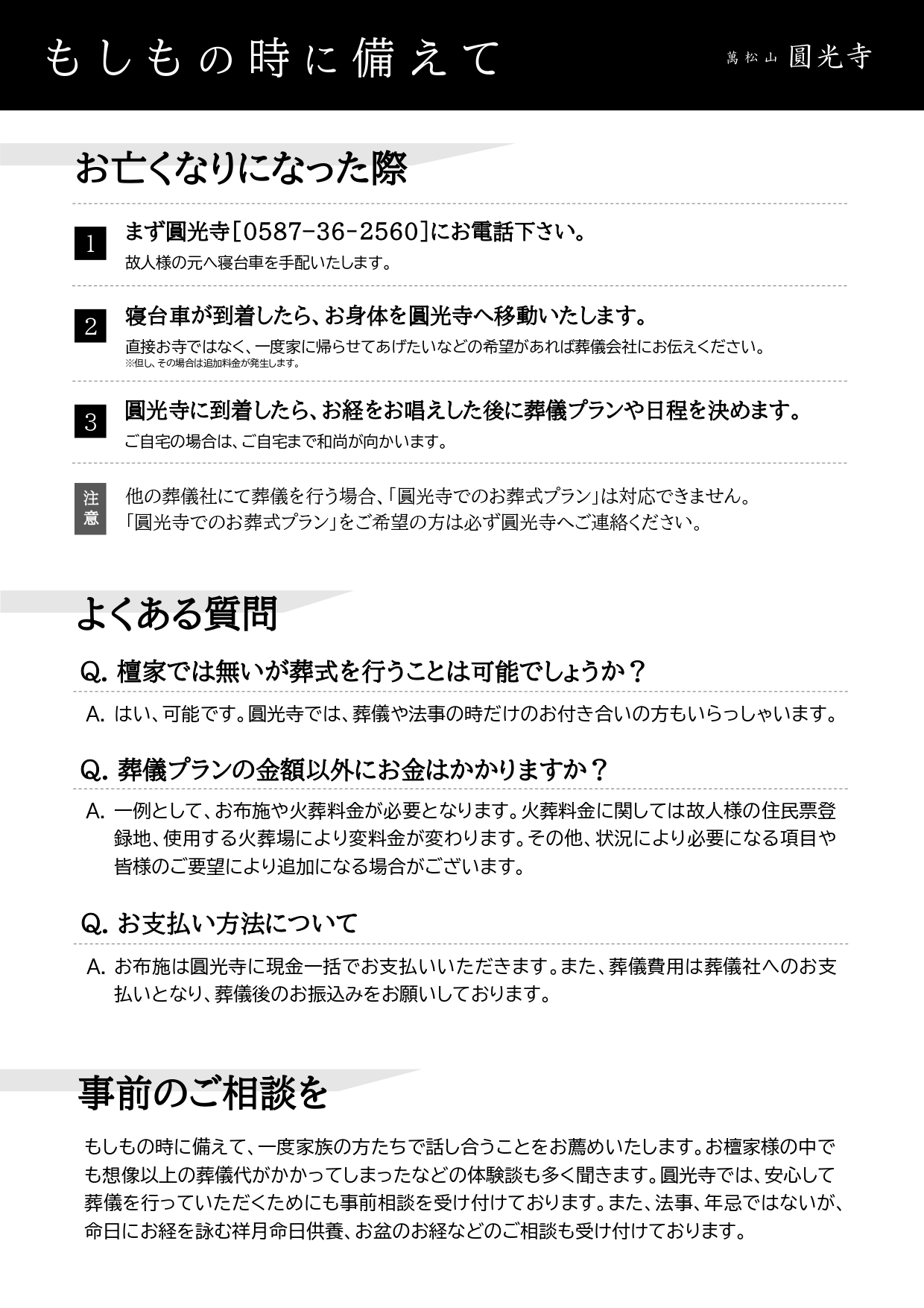 圓光寺本堂にて葬儀、四十九日忌法要、年期法要を行うことができます。控室、トイレなども完備しており全てがイス席ですので、どなたでも安心してご利用いただけます。